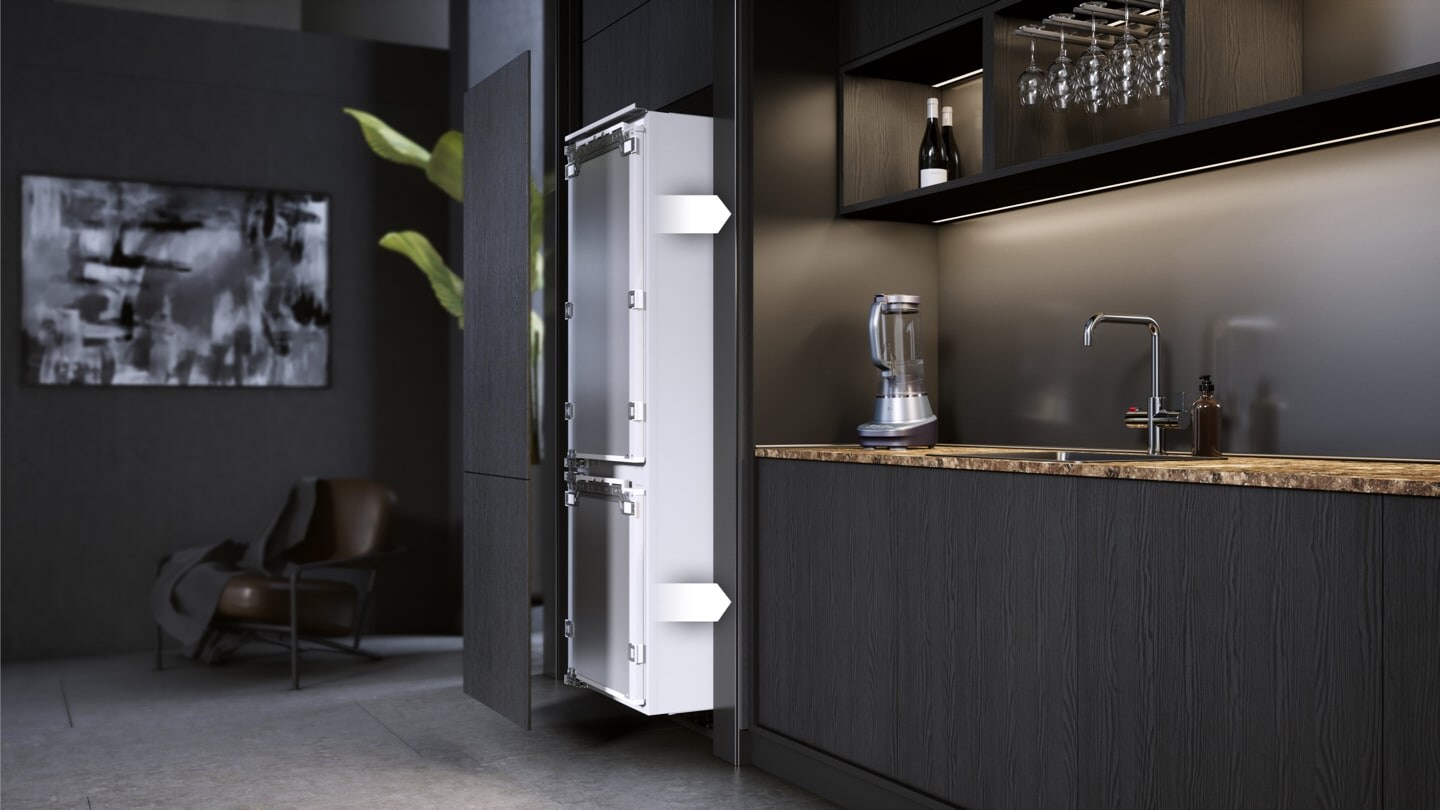Γρήγορη και άψογη εγκατάσταση του νέου σας ψυγείου. Στη νέα σειρά εντοιχιζόμενων συσκευών ψύξης απαιτούνται μόνο 73 βήματα για την εγκατάσταση του ψυγείου. Η σχεδίαση της πόρτας έχει μικρότερο πλάτος, για να διασφαλίζεται ότι το ψυγείο μπορεί να εγκατασταθεί χωρίς να έρχεται σε σύγκρουση με τη γύρω επίπλωση. Η νέα εντοιχιζόμενη πλατφόρμα παρέχει εγγυημένη εγκατάσταση ακριβείας, χωρίς να απαιτούνται μετρήσεις. Αυτό οφείλεται στα παρεχόμενα πρότυπα με καθορισμένες διαστάσεις που βοηθούν στην τοποθέτηση της συσκευής με ακρίβεια, για εύκολη και γρήγορη εγκατάσταση. Δείτε το video