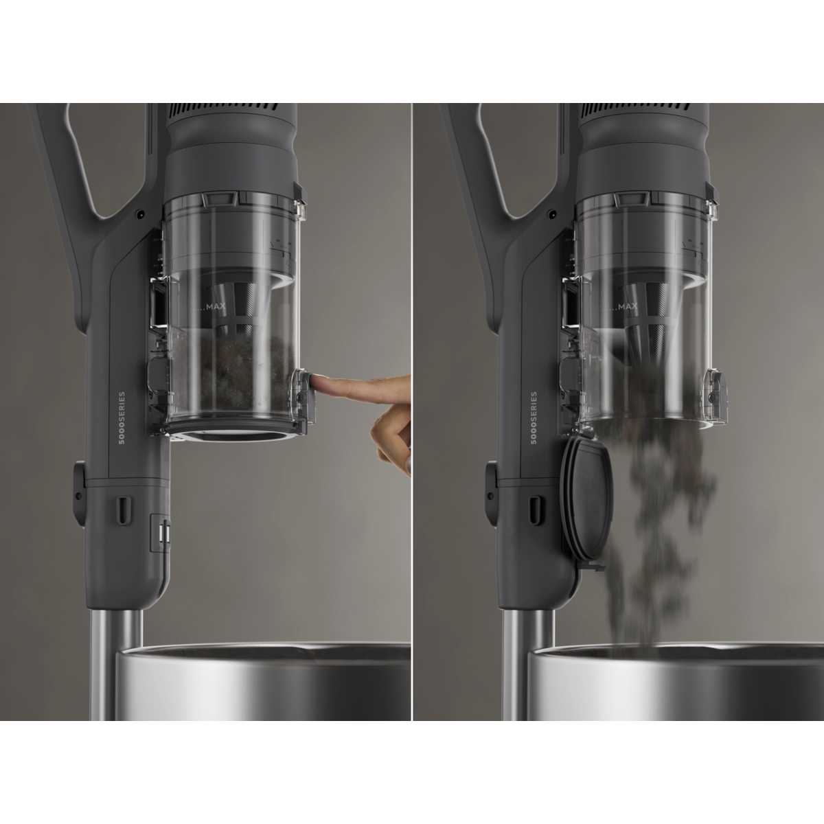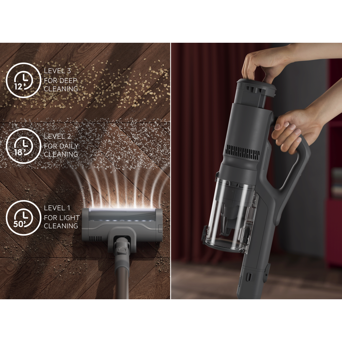 Η ισχυρή αναρρόφηση εξασφαλίζει έως και 99%* συλλογή σκόνης σε σκληρά δάπεδα. Ο ασύρματος και ελαφρύς σχεδιασμός σάς επιτρέπει να κινείστε με ευελιξία, ενώ το άδειασμα με μία κίνηση κάνει τη συντήρηση γρήγορη και εύκολη. Σχεδιασμένη για ισχυρή απόδοση.