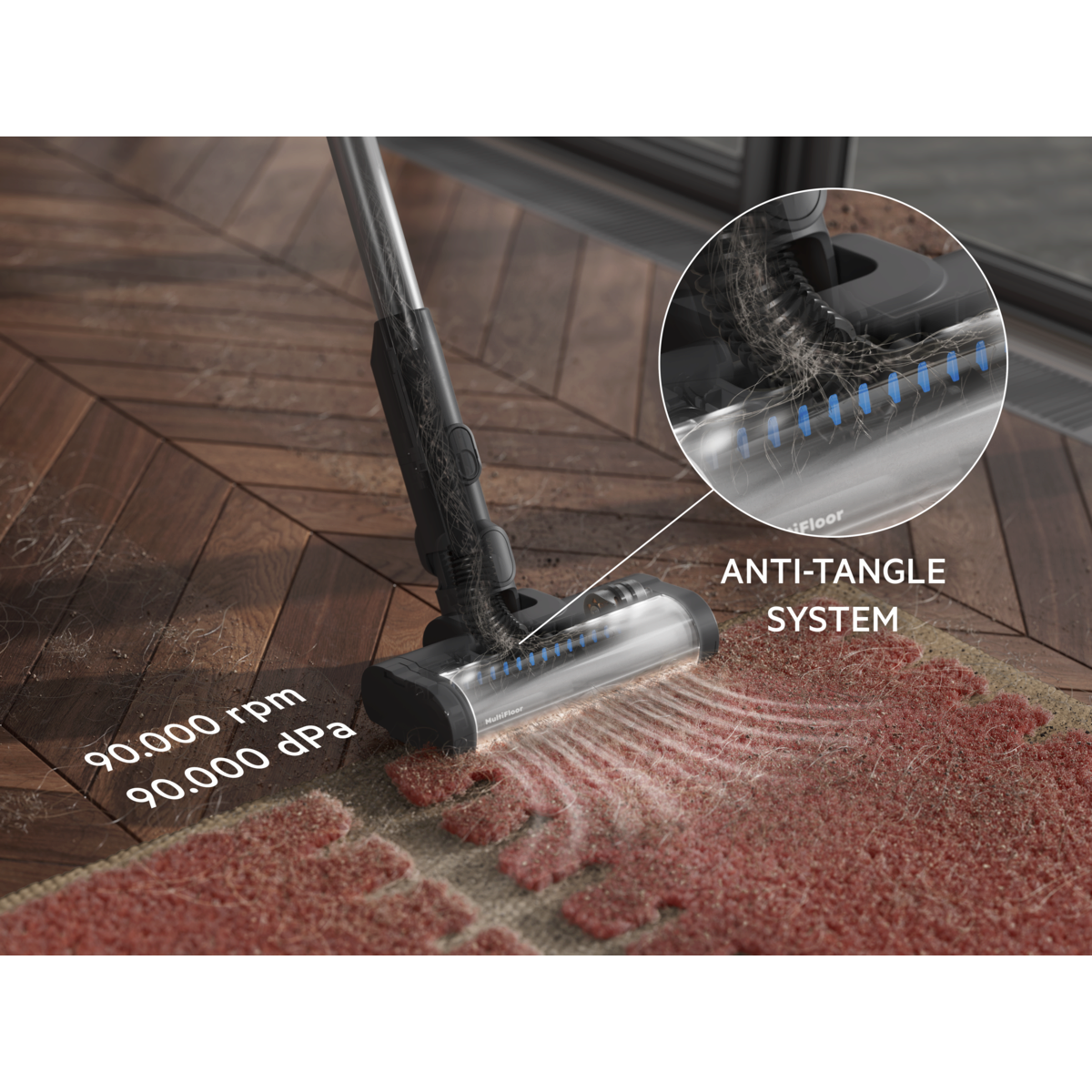 Ισχυρό καθάρισμα. Σχεδιασμένο για σκληρά δάπεδα και χαλιά